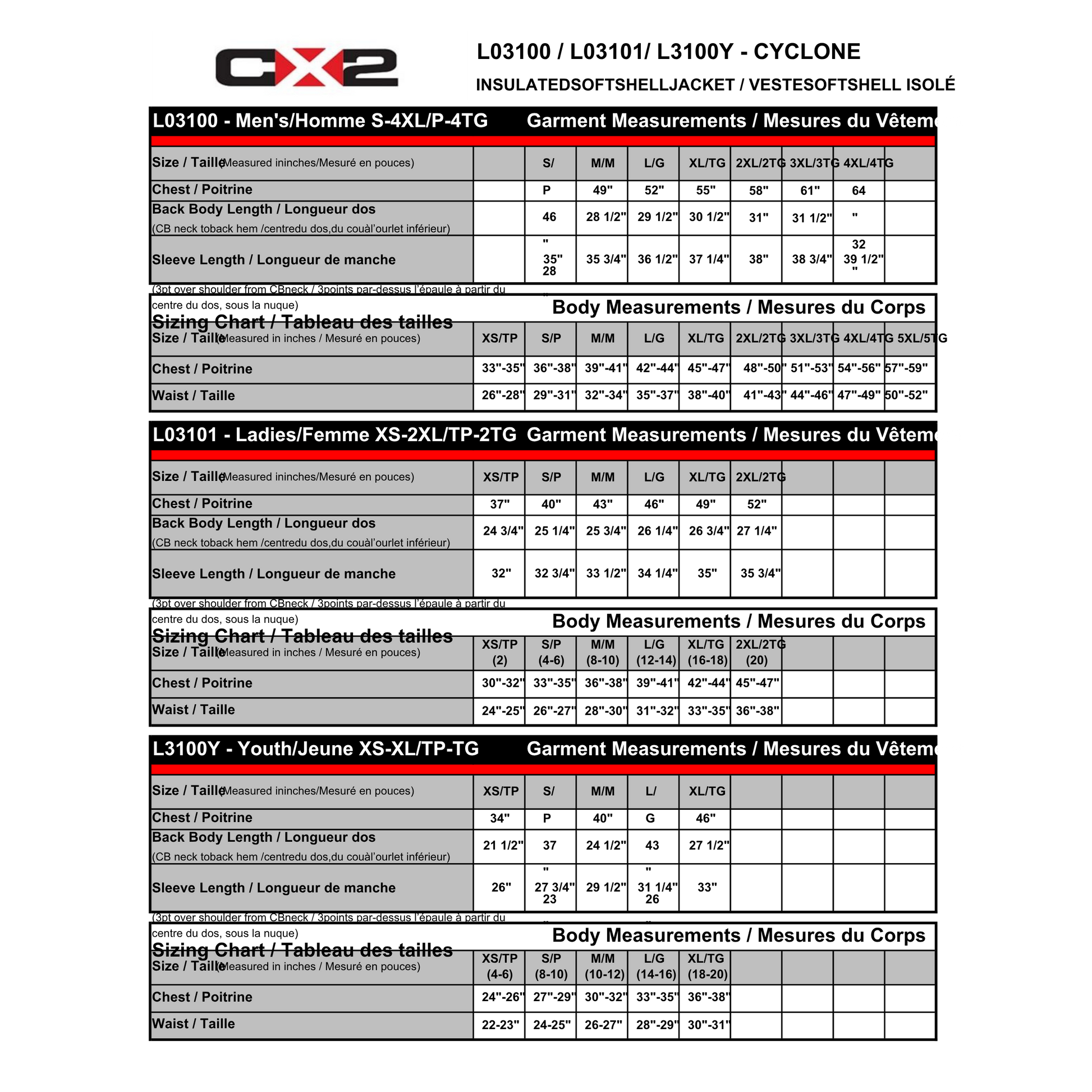 Cyclone Insulated Men's, Ladies, Youth L03100, L03101, L3100Y