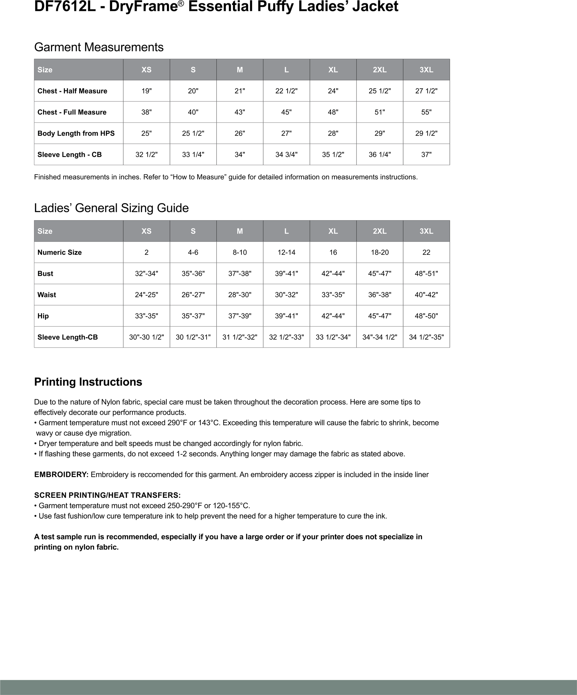 - Exterior: 3.5-oz, 100% DWR nylon taffeta with matte finish